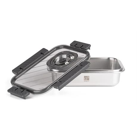 Dóza je vyrobena z kvalitní nerezové oceli, která je zcela bezpečná pro styk s potravinami. Materiál neovlivňuje chuť ani barvu jídla, nerezne a odolává i extrémním teplotám od -100 až do +400 °C. Díky tomu dózu využijete nejen k uchovávání čerstvých potravin, ale také k mražení a dokonce i k pečení (bez víka). Hladký neporézní povrch brání usazování bakterií a snadno se čistí, dóza je tedy ideální pro každodenní použití doma, v restauraci i při outdoorových aktivitách.