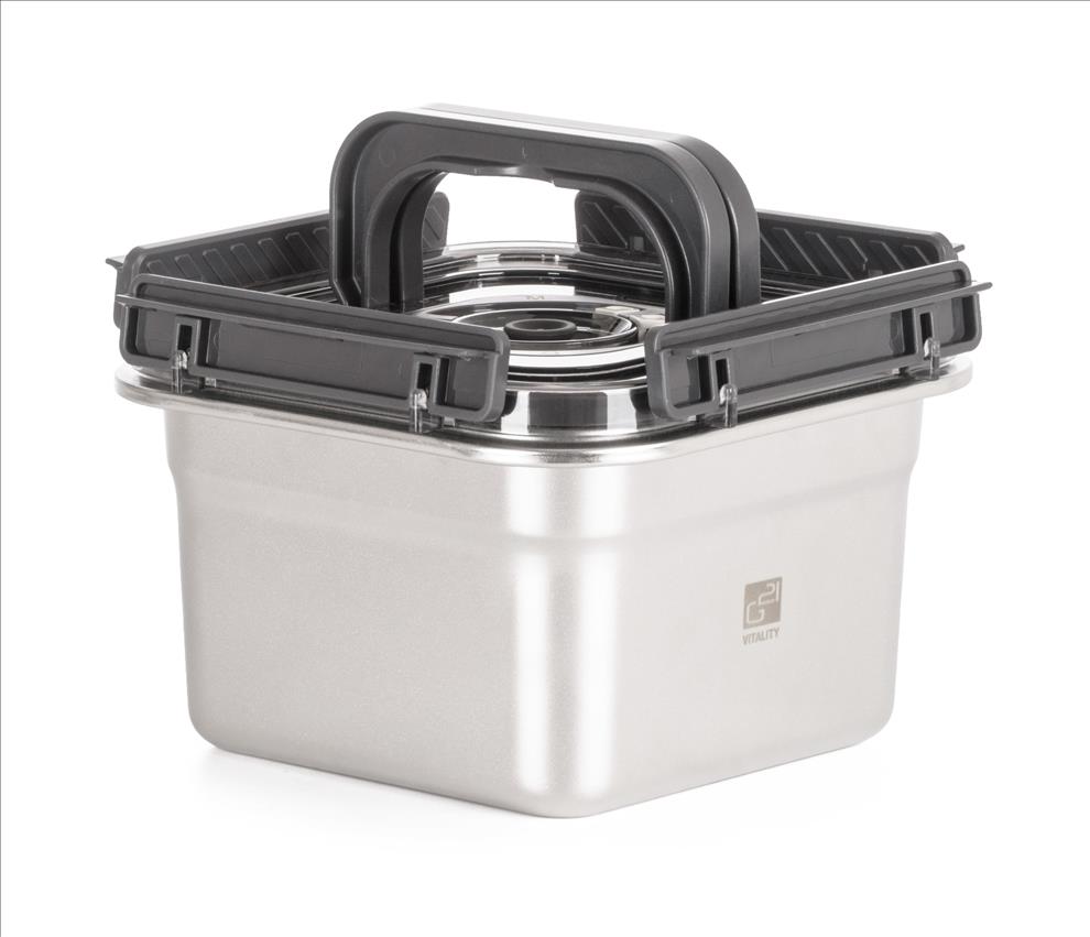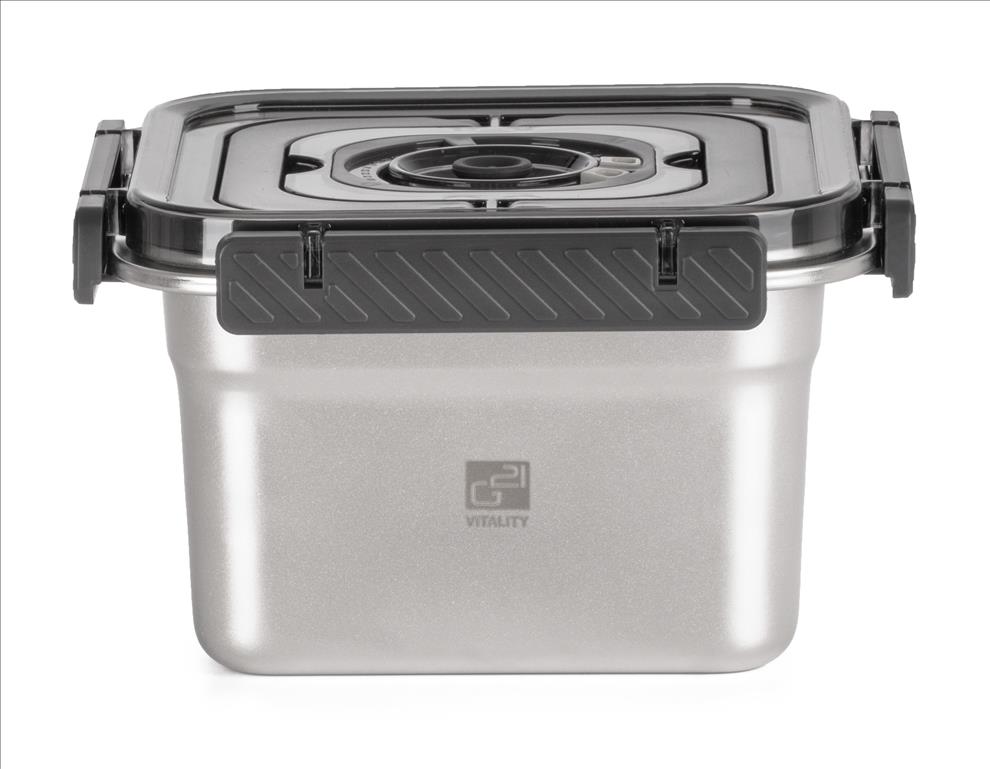 Vakuováním výrazně prodlužujete trvanlivost potravin, zachováváte jejich chuť, vůni i nutriční hodnoty. Nerezová dóza je kompatibilní se všemi vakuovačkami G21. Vakuování minimalizuje kontakt potravin se vzduchem, takže zpomaluje oxidaci a zamezuje růstu bakterií a plísní. Díky tomu si potraviny uchovávají svou přirozenou chuť, texturu i živiny mnohem déle než při běžném skladování.