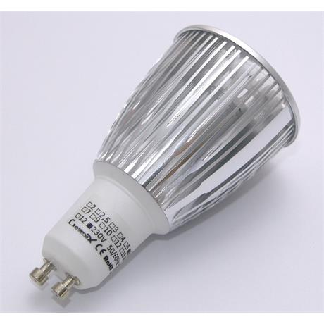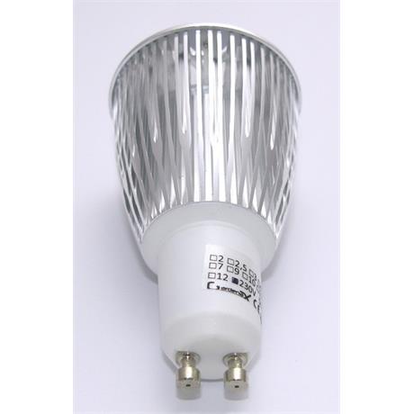 LED žárovka, patice GU10, napájení AC 230V, příkon 6W, barva světla 2700-3500K (teplá bílá), světelný tok 400lm,3x LED typu Everlight, úhel svitu 30°, náhrada 40W žárovky, životnost až 50 000 hodin.
