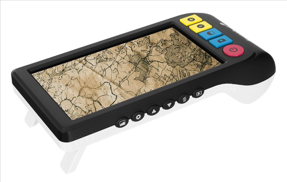 Díky velkým tlačítkům, které jsou označené ikonami, je ovládání lupy jednoduché. Umístíte ji na stránku a pohybujete s ní tak, abyste si přečetli potřebné informace nebo prostudovali obrázky.