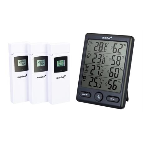 Díky meteorologické stanici Levenhuk Wezzer PLUS LP20 se dozvíte, jak se vhodně obléct, aby vám nebyla venku zima nebo naopak příliš velké horko. Pomůže vám při sledování změn počasí a mikroklimatu v místnostech nebo budovách na pozemku. Jelikož měří teplotu a vlhkost na 4 místech současně, budete mít vždy o těchto hodnotách přehled. Základna stanice zjišťuje stav teploty a vlhkosti v místě instalace. Můžete ji přimontovat ke stěně nebo ji umístit na rovný povrch. Dálkové ovládání třech bezdrátových senzorů přenesou údaje do základní stanice pomocí rádiového spojení. Senzory také připevníte ke stěně, ovšem dbejte na to, aby zůstaly nejdále 30 metrů od základnové stanice.