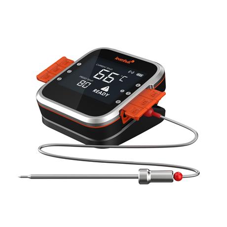 Teploměr Levenhuk Wezzer Grill BT20 umožňuje sledovat teplotu několika pokrmů současně a díky mobilní aplikaci ToGrill máte vše pod kontrolou odkudkoliv. Přednastavené programy pro různé druhy masa pomáhají dosáhnout ideálního stupně propečení a přizpůsobitelná upozornění vás informují o dosažení cílové teploty. Stabilní Bluetooth připojení s dosahem až 60 m vám umožní věnovat se jiným aktivitám, zatímco se jídlo připravuje.