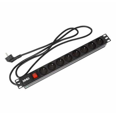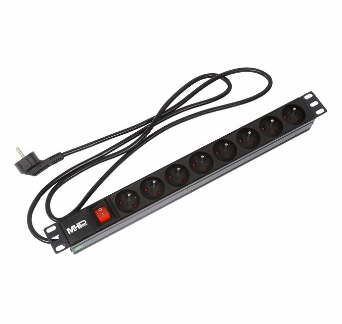 1. 1x Rozvodný panel MHPower PDU-FR4K8 19" 8x230V, 16A, 4000W, černý, kabel 1,8m, hliníkový