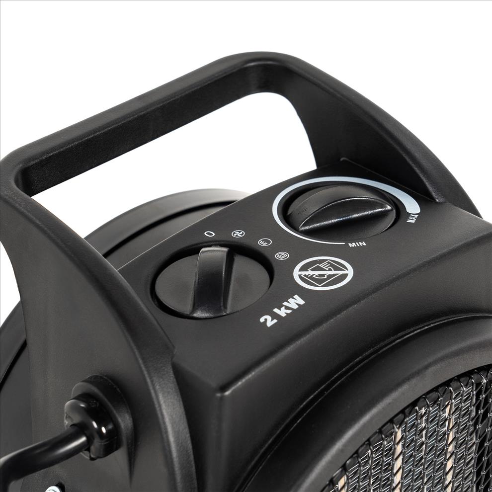 Elektrický ohřívač s výkonem 2 000 W, keramické topné těleso PTC, regulace teploty od 0 do 40 °C, tichý chod. Jednoduché ovládání, funkce ohřívače a ventilátoru, pevná a odolná konstrukce, kompaktní rozměry.