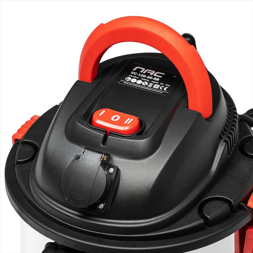 Průmyslový vysavač NAC VC-120-30-RB s výkonem 1200 W a nádobou o objemu 30 l zvládne náročný úklid v dílně, garáži i kolem domu. Umožňuje vysávání na sucho i mokro, takže si poradí s prachem, nečistotami i rozlitými kapalinami.