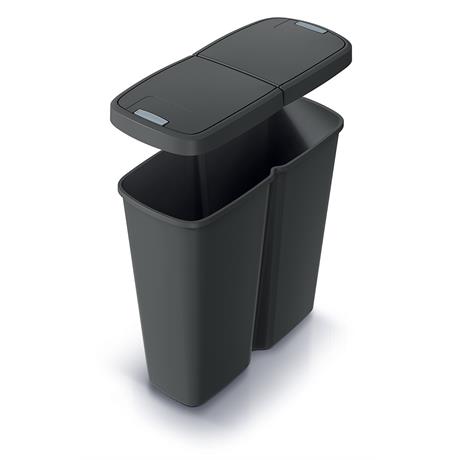 Odpadkový koš o objemu 50 l, jedna velká vnitřní nádoba, dvojité víko s tlačítkovým otevíráním, možnost uchycení 2 odpadkových pytlů pro snadné třídění.