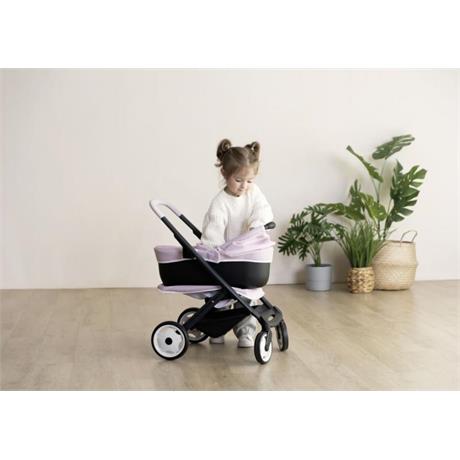 Kombinovaný kočárek pro panenky Smoby Maxi Cosi potěší každou malou maminku. Díky odnímatelné korbičce a otočným kolečkům nabízí realistickou a pohodlnou hru na péči o miminko.