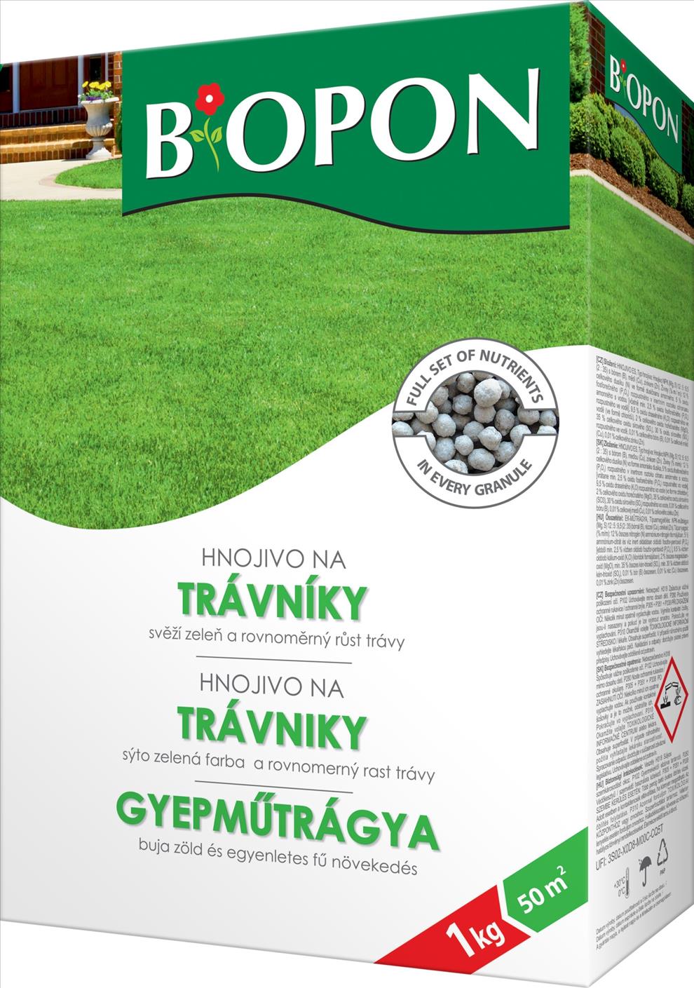 Jediným způsobem, jak vypěstovat zelený a hustý trávník, je jeho pravidelné ošetřování. Časté sečení přispívá k houstnutí drnů, ale tráva při svém intenzivním růstu rychle spotřebovává složky obsažené v půdě. Používáním BOPONU na trávníky obohacujeme půdu nejdůležitějšími výživnými složkami. Trávník díky tomu nezarůstá plevelem, snižuje se počet prázdných míst a intenzita výskytu mechu. Při zakládání nového trávníku stimuluje jeho růst. Bujně rostoucí trávu sečte nejméně jednou týdně.