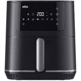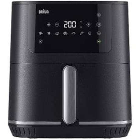 Horkovzdušná fritéza. BRAUN HF5034IBK MultiFry 5. . Technologie RealAir. 8 automatických programů na vaření. Teplota od 80 °C do 200 °C. Příkon 1700 W. Kapacita 6 l. . Koš a mřížka jsou snadno vhodné do myčky nádobí. Keramický povrch. Délka napájecího kabelu 0,8 m. Dotykový LED ovládací panel. . Rozměry (VxŠxH) 31,5 x 27 x 26,5 cm. Hmotnost 4,5 kg. . Barva černá