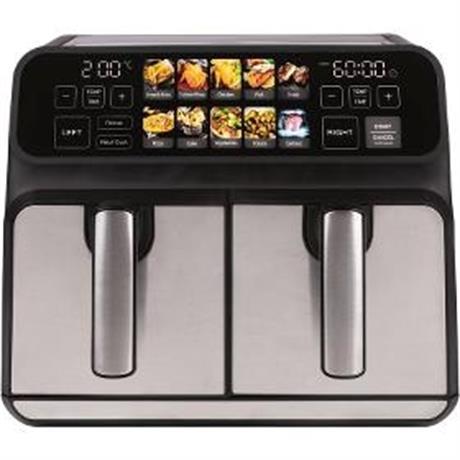 Horkovzdušná fritéza. ProfiCook FR 1287 H 8 l. . Příkon 2200 W. Zdravá a rychlá příprava bez tuku a oleje. Má 9 programů pro různé pokrmy. Funkce pro udržování teploty 50 °C až 200 °C. 2 oddělené koše mají XXL objem. Dotykový displej pro pohodlné ovládání. . Rozměry (V x Š x H) 32,8 x 38,9 x 37,5 cm. Hmotnost 7,3 kg. Barva černá
