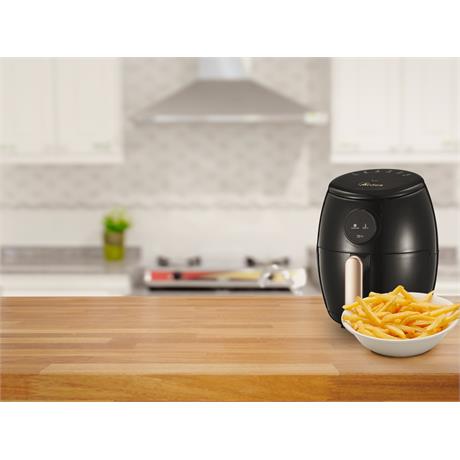 Až o 80 % méně tuku než tradiční fritéza. Bez tuku nebo jen s minimem škodlivého oleje a tím pádem zdravější jídla. Horký vzduch v jádru fritézy rychle a přesně cirkuluje a udržuje tak optimální teplotu grilovacího tělesa, které pokrmy následně peče, smaží či frituje. Ve fritéze si budete moct připravit celou řadu pokrmů, například maso, ryby, krevety, smažené brambory či hranolky. Minimum kouře a pachu.