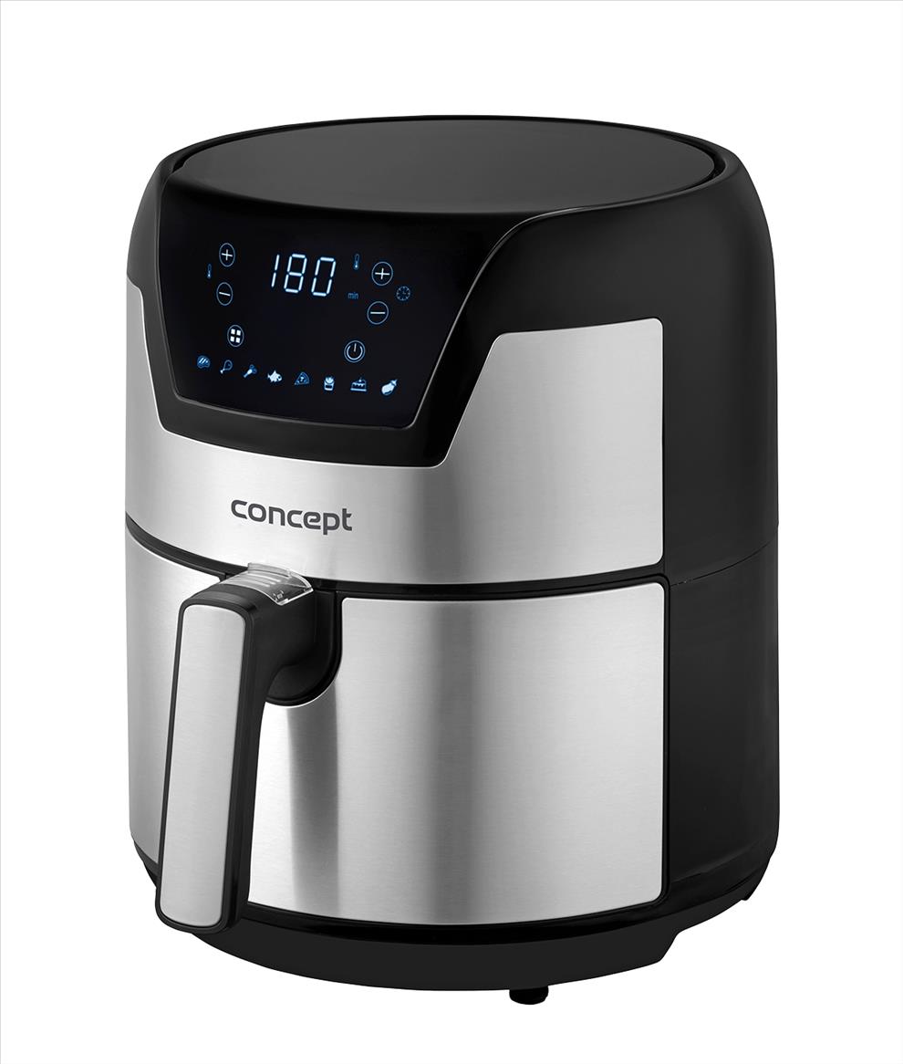 Ovládání fritézy FR3500 je velmi jednoduché a díky velkému dotykovému LED displeji také přehledné a intuitivní. Stačí zvolit jeden z 8 přednastavených programů - steak, kuře, mořské plody, ryby, pizza, hranolky, pečení, zelenina. O zbytek už se starat nemusíte. Fritéza sama nastaví čas přípravy a požadovanou teplotu. O konci programu vás informuje zvuková signalizace. Teplotu můžete regulovat také manuálně v rozmezí od 80 – 200 °C a využít časovač, který vám pohlídá potřebnou dobu přípravy.