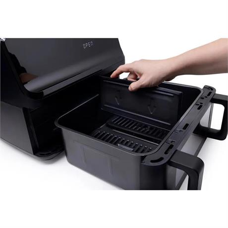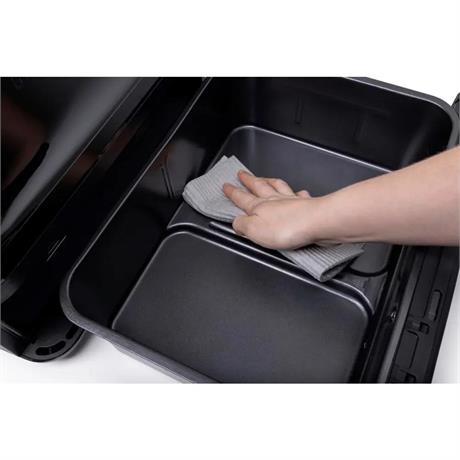 Horkovzdušná fritéza, příkon 2700 W, duální, objem nádoby 9 l (2x 4,5 l), nepřilnavý povrch, 8 přednastavených programů, rozsah nastavení teploty 80 - 200 °C, černá