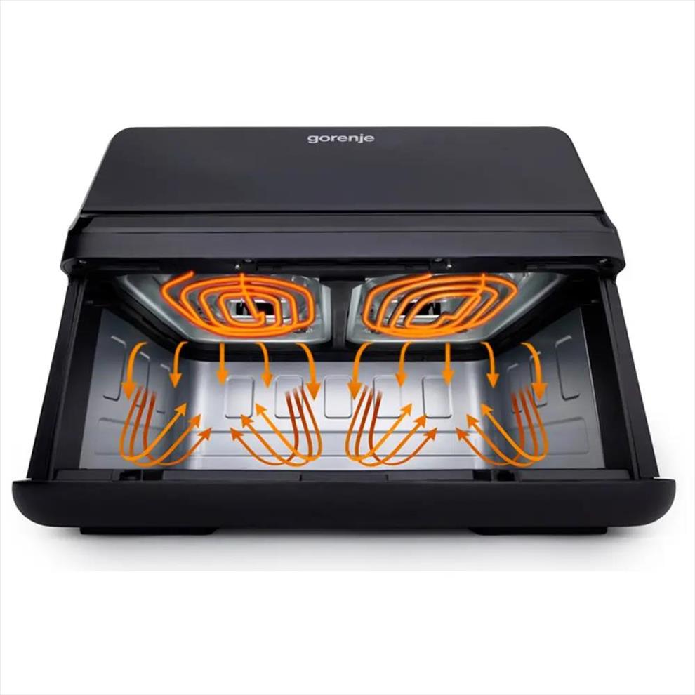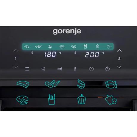 Horkovzdušná fritéza Gorenje AF2700BP kombinuje vysoký výkon s moderním způsobem přípravy jídel, který šetří čas i kalorie. Díky příkonu 2 700 W zvládne rychle a rovnoměrně připravit vaše oblíbené pokrmy bez nutnosti použití velkého množství oleje. Stačí jen pár kapek a výsledkem jsou křupavé hranolky, šťavnaté kuřecí kousky či cibulové kroužky plné chuti. Vyjímatelnou přepážkou rozdělíte koš na 2 oddělené zóny. Tento praktický duální systém s celkovým objemem 9 l (2 × 4,5 l) vám umožní připravit 2 různá jídla najednou bez mísení chutí. S LED displejem a dotykovým ovládáním máte celý proces plně pod kontrolou.
