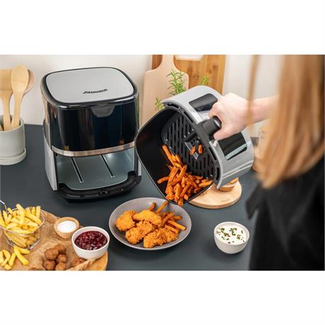 Horkovzdušná fritéza, zdravé smažení s minimálním množstvím tuku, technologie proudění vzduchu 360°, 8 přednastavených programů, termostat v rozmezí 60 - 200 °C, časovač, LCD displej, objem 5,5 l