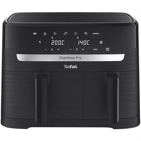 Připravte kompletní jídlo pro celou rodinu v rekordním čase a s minimálním úsilím. Postará se o to horkovzdušná fritéza EY901N10 od značky Tefal. Zvládne to díky 2 nádobám, ve kterých zvládne současně fritovat 2 rozdílné pokrmy najednou. Do velké XXL nádoby o objemu 5,2 l se pohodlně vejde celé kuře a ve druhé nádobě o velikosti 3,1 l můžete připravit štědrou porci hranolek. Vše je extrémně rychlé, snadné a minimálně energicky náročné.
