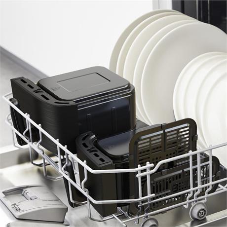 Horkovzdušná fritéza, 7 přednastavených programů, 2 nádoby, nádoba XXL 5,2 l, běžná nádoba 3,1 l, příprava více pokrmů najednou, technologie Extra-Crisp, energeticky úsporné horkovzdušné fritování, aplikace