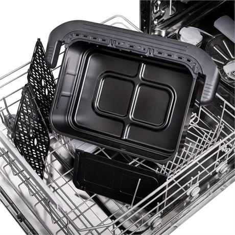 Duální horkovzdušná fritéza s 10l košem (2 × 5 l), 3 topnými tělesy a 360° TotalAirFlow pro rovnoměrné propečení. Keramický povrch CeramEQ+, 8 programů, funkce Sync Cook a Sync Finish, myčka nádobí, 2900 W výkon.