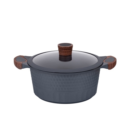 vnitřní nepřilnavý povlak PFLUON, ergonomická dřevěná rukojeť Soft Touch s poutkem na zavěšení, skleněná poklice s otvorem pro páru, dno pánve je vyztuženo diskem proti deformaci, vhodné pro všechny typy sporáků včetně indukčních, materiál hliníková litina, průměr 24 cm, výška 11 cm, objem 5,3 l