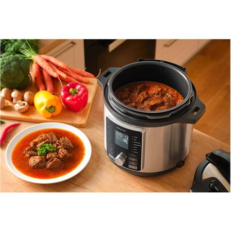 S využitím tlaku můžete vařit až o polovinu rychleji a úsporněji. S tímto elektrickým tlakovým hrncem vždy dosáhnete perfektních výsledků, a to i při vaření tužšího masa. Vychutnat si navíc můžete i luštěniny, a to i bez nutnosti dlouhého namáčení.
