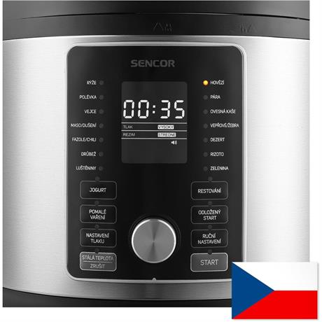 Na rozdíl od jiných spotřebičů nabízí elektrický tlakový hrnec Sencor SPR 6600SS ovládací panel zcela v českém jazyce. S tímto přístupem se snadno zorientujete v dostupných programech a dodatečných funkcích, což vám umožní rychlé a efektivní nastavení.