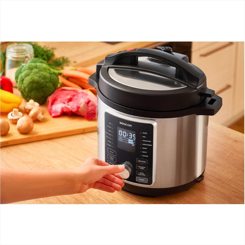 Pokud jste někdy měli strach z babiččina starého papiňáku, s elektrickým tlakovým hrncem Sencor můžete na své obavy klidně zapomenout. Tento hrnec je navržen s vícenásobným bezpečnostním systémem s ventilovými uzávěry, což zajišťuje bezpečné vaření i při vysokém tlaku.