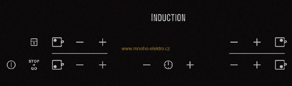 | Kontrolní funkce: Zajištění/odjištění ovládacího panelu|minutka|indikátory zbytkového tepla|ukazatel času|Funkce STOP + POKRAČOVAT|akustický signál|automatické zahřátí|funkce POWER ( Booster ) = rychlé ohřátí|dětský zámek |