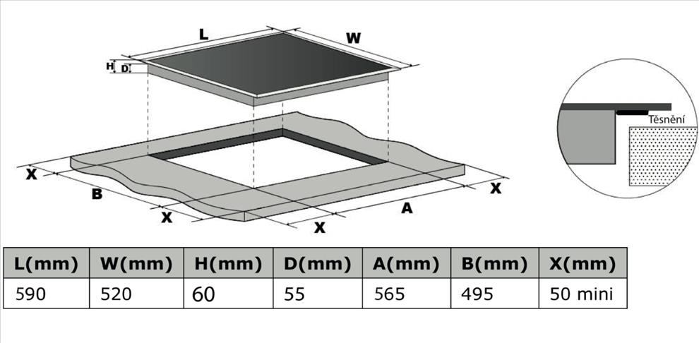Rozměry pro vestavbu ŠxH– 565 x 495 mm