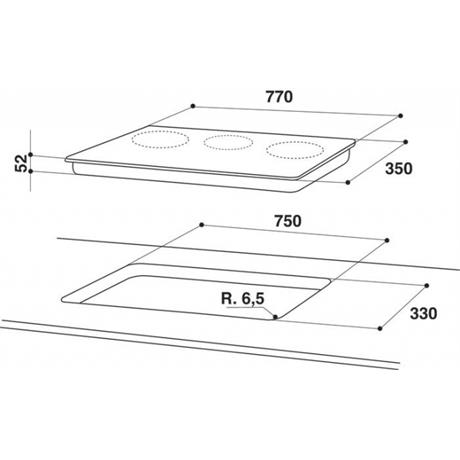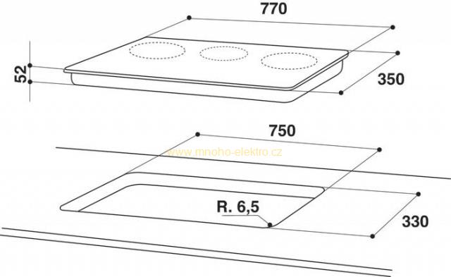| • Rozměry otvoru pro zabudování (vxšxh): 30-60x730x330 mm |