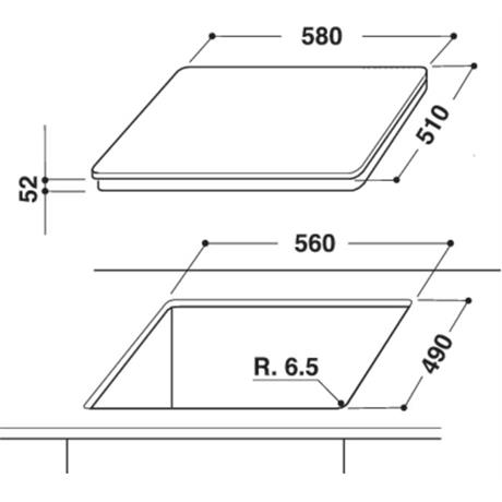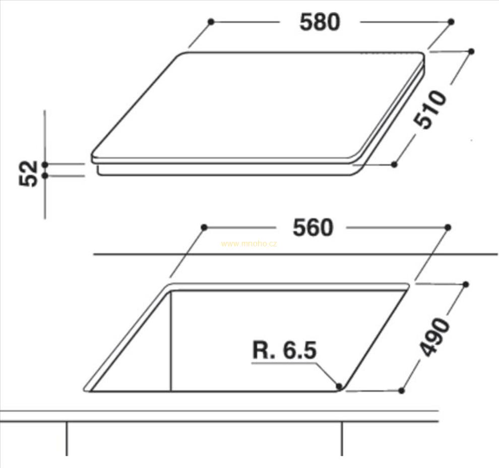 • Rozměry pro vestavbu: 5,2×56×49cm (VxŠxH)
