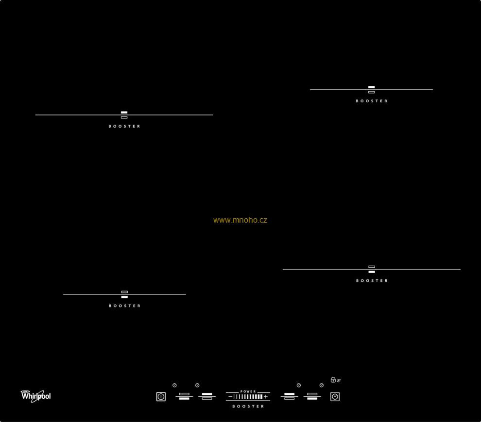 Indukční varná deska Whirlpool ACM 836/BA v šířce 58cm s dotykovým ovládáním umístěným v přední části. Je vybavena 4 indukčními zónami s časovačem, na kterém lze nastavit čas vaření až 99 minut.