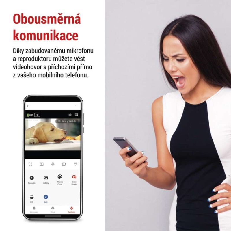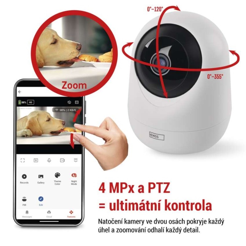 Otočná kamera IP-220W zajistí bezpečí vaší domácnosti nebo kanceláře. Je vybavena 4 MPx rozlišením a chytrými funkcemi jako je např. PTZ, detekce pohybu, detekce zvuku, má vestavěný reproduktor a mikrofon. Díky notifikacím na vaše mobilní zařizení budete mít přehled o dění doma kdykoliv a kdekoliv, navíc je záznam ukládán na SD kartu nebo do cloudu. Funkce DUALBAND – 2,4 i 5 GHz Wi-Fi zajistí, že již nebudete mít problém s připojením do vaší Wi-Fi sítě. Elegatní design, kompatní rozměry a flexibilní umístění – to vše zajistí, že se kamera hodí do každého interiéru.