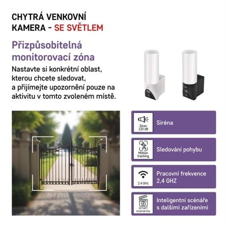 Světlo na kameře můžete ovládat prostřednictvím aplikace, PIR čidla, které zajistí automatické zapnutí/vypnutí osvětlení při zaznamenaném pohybu, časovačem, případně rozšířit ovládání světelného zdroje pomocí externího chytrého vypínače.