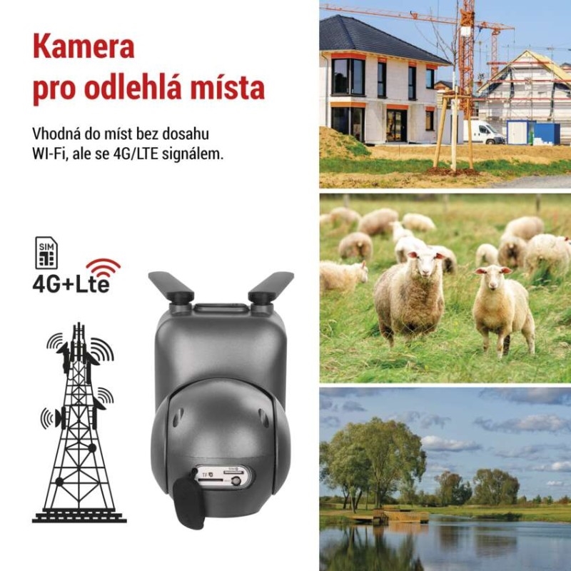 Venkovní chytrá kamera s 4G/LTE připojením nabízí revoluční kombinaci funkcí, které zajistí bezpečnost a umožňují flexibilitu v umístění. Díky připojení přes mobilní síť je možné monitorovat vybranou oblast kdekoliv, kde nemáte Wi-Fi připojení, ale je zde pokrytí mobilním signálem, jako je např. chalupa u lesa, včelíny nebo odlehlé objekty. Mějte tak svůj majetek stále pod kontrolou, ať už jste kdekoliv. Díky notifikacím na vaše mobilní zařízení můžete reagovat na každou událost.