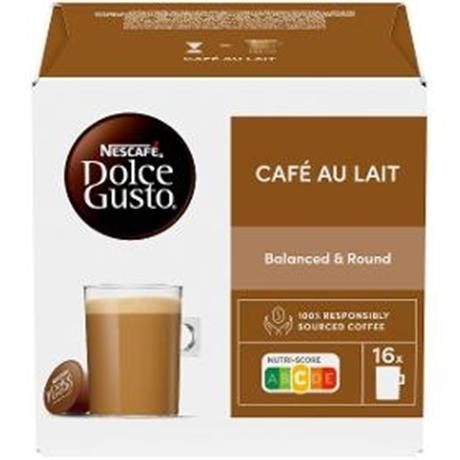 Kapsle Dolce Gusto. Nescafé Dolce Gusto Café Au Lait 16 ks. . Intenzita 7. Objevte intenzivní, sytě praženou směs kávy s jemnými tóny obilovin, završenou lahodnou pěnovou pokrývkou, která dává naší kávě Cafe au Lait nezaměnitelnou chuť. Pro kávovary na kapsle Dolce Gusto