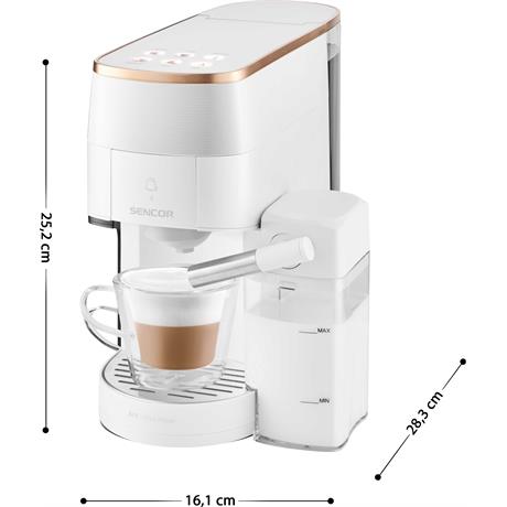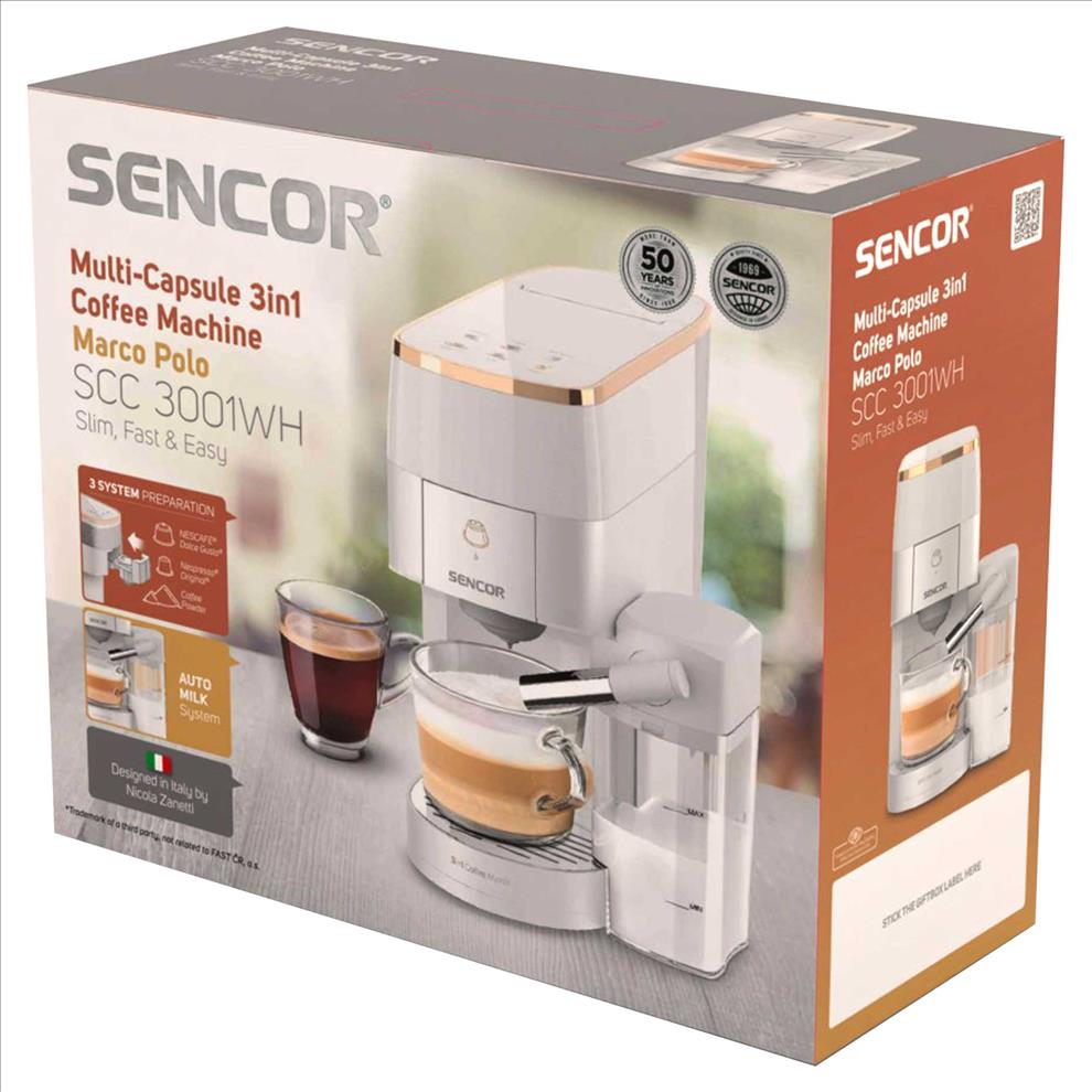 Objevte nekonečné možnosti v přípravě kávy s multikapslovým Espresso kávovarem Sencor SCC 3000BK, který vám připraví lahodnou kávu snadno, rychle a kvalitně. Podle vašich preferencí si můžete vybírat ze široké nabídky kapslové kávy Nespresso® Original*, NESCAFÉ® Dolce Gusto®* anebo mleté zrnkové kávy jakékoliv značky. Díky barevnému displeji si lehce zvolíte svůj oblíbený nápoj jenom jedním dotykem. Za profesionální kvalitou stojí výkonné čerpadlo s tlakem 19 barů a systém ohřevu vody Thermoblock. Kávovar je vybaven nádržkou na mléko pro automatické napěnění mléka a snadným čištěním s automatickým proplachem. Pro jeho kompaktní rozměry si ho můžete pořídit i do menších bytů.