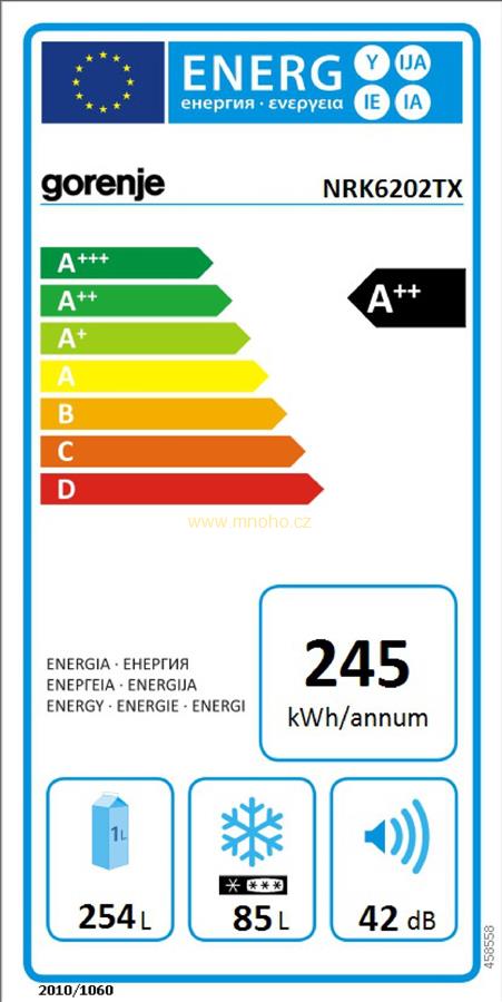Volně stojící kombinovaná chladnička NRK 6202 TX s celkovým objemem 339l a energetickou třídou A++, disponuje technologií IonAir, která ničí většinu bakterií uvnitř spotřebiče.