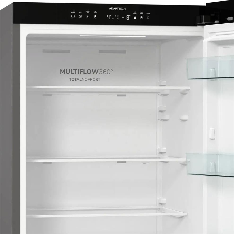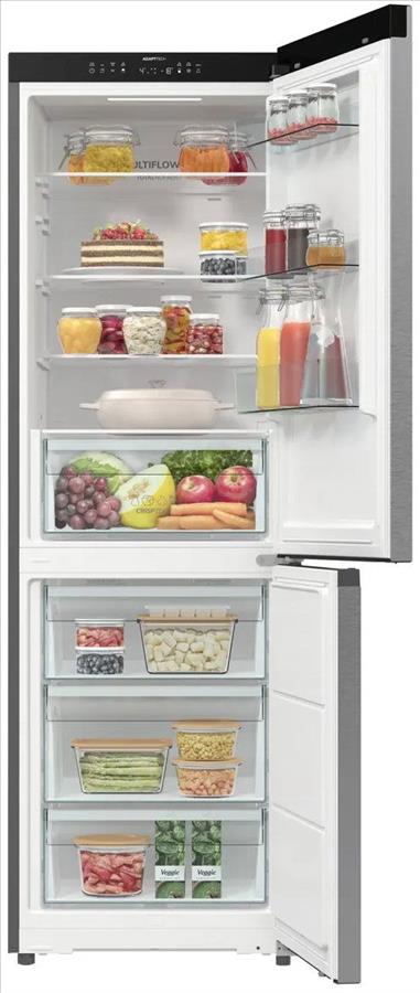 Lednice s mrazákem - energetická třída C, objem ledničky 215 l, objem mrazáku 114 l, 5 polic, panty vpravo, displej, LED osvětlení, teplotní alarm, indikace otevřených dveří chladničky, polohovatelné police a Counter-depth, super chlazení, super mrazení a automatické odmrazování mrazáku, bez připojení na vodu, total No Frost a Multi-AirFlow, rozměry 185 × 59,5 × 59,8 cm (V׊×H)