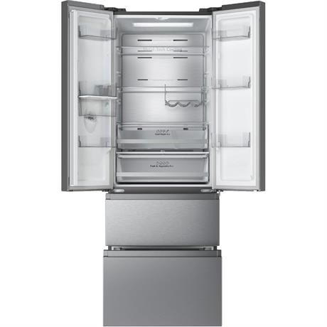 Praktické členění French door lednice vám umožní zorganizovat si obsah uvnitř podle vašich potřeb. Na 4 police v této lednici bylo použito velmi kvalitní tvrzené sklo, které má mnohem vyšší nosnost než třeba plast. Bez obav na ně proto můžete položit i těžší nádoby či potraviny. K dispozici je i 6 polic ve dveřích a stojan na víno a vejce. Skvělou funkcí je pak praktický dávkovač chlazené vody na dveřích bez nutnosti připojení na vodovodní síť. Vhod vám přijde také CrispZone zásuvka s regulátorem vlhkosti HumidityControl. Díky modernímu invertorovému kompresoru vyniká americká chladnička Hisense RF632N4WIE1 s výškou 2 000 mm i velmi tichým provozem, který nepřesáhne 36 dB, tudíž ji téměř neuslyšíte ani během relaxace anebo při práci a studiu.