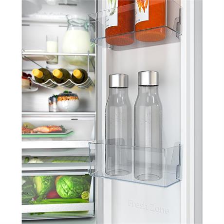 Kombinovaná chladnička Hisense RF632N4WIE1 disponuje velkokapacitní mrazničkou, která nabízí místo i na mraženou pizzu. Jedná se o zásuvku, která má snadno klouzavé pojezdy, takže její vytahování je snadné, i když je napěchovaná potravinami. Mrazák je vybaven automatickým systémem odmrazování Total No Frost. Zmrazovací kapacita mrazničky činí 11 kg za den a akumulační doba při výpadku provozu je 10 hod. Pokud se vám náhodou stane, že zapomenete zavřít dvířka, inteligentní senzor to včas rozpozná a upozorní vás zvukovým alarmem a blikající textovou zprávou.
