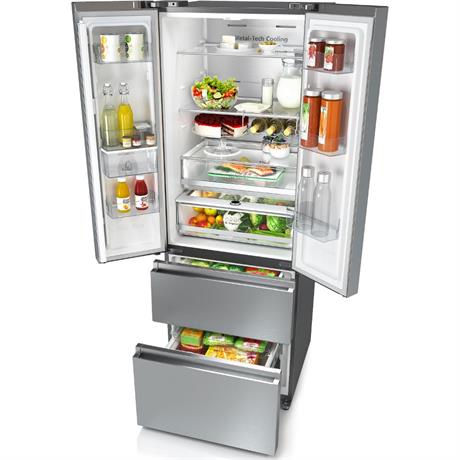 Lednice French Door, energetická třída E, objem chladničky/mrazničky 336/149 l, hlučnost 36 dB, Wi-Fi, NoFrost Plus, NoFrost Plus, dávkovač vody, Multiflow 360°, CrispZone s HumidityControl, Invertorový kompresor