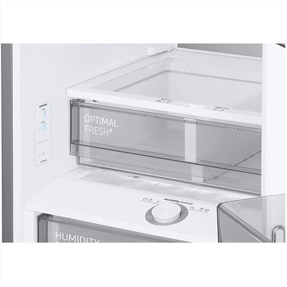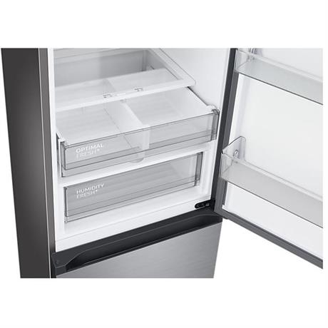 Pro efektivní ukládání velkých lahví se kombinovaná chladnička Samsung RB38C7B6AS9/EF pyšní technologií NoFrost zabraňující tvorbě námrazy. Technologie digitálního invertoru reguluje rychlost a umožňuje tak snižovat spotřebu elektrické energie. Samozřejmostí je také nastavitelná vlhkost v přihrádce Humidity Fresh+.