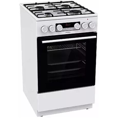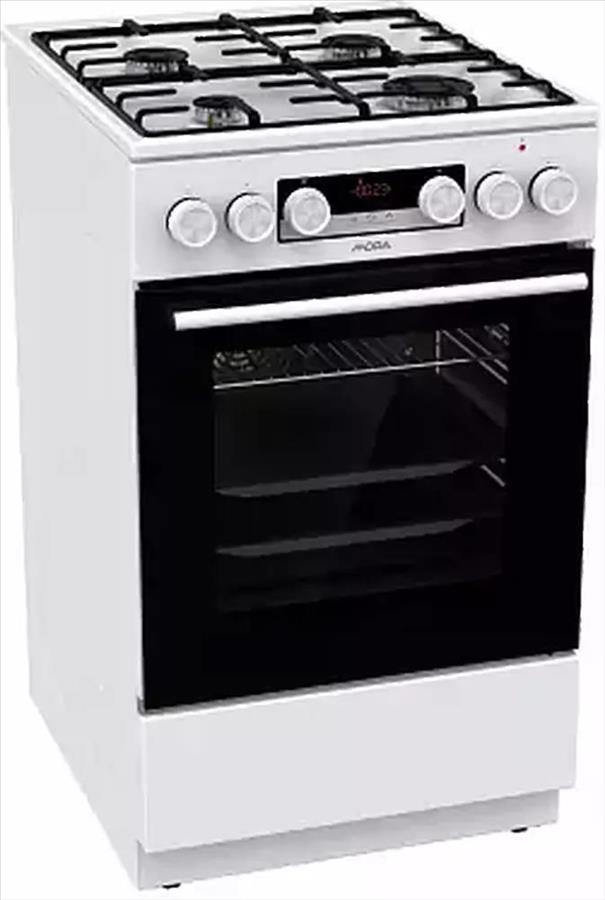 kombinovaný sporák • energetická třída A • 4 plynové hořáky s pojistkami STOP GAS (vlevo vpředu O 5,4 cm, 1 kW; vpravo vpředu O 9,9 cm, 3 kW; vlevo vzadu O 7,4 cm, 1,9 kW; vpravo vzadu O 7,4 cm, 1,9 kW) • objem multifunkční trouby 70 l • 8 druhů ohřevu • smaltovaná dvoudílná mřížka STABIL PLUS • integrované zapalování hořáků • digitální dotykový časový spínač s hodinami • možnost programování doby pečení • program PIZZA • program HOTOVÁ A MRAŽENÁ JÍDLA • ECO CLEAN (funkce na čištění trouby) • regulace teploty v troubě v rozmezí 50–275 °C • osvětlení trouby • chladná dvířka • úložný prostor • jmenovitý příkon 3,2 kW • elektrické napětí 230 V • rozměry 85 × 50 × 59,4 cm • barva bílá • příslušenství: rošt, XXL hluboký pekáč, mělký plech