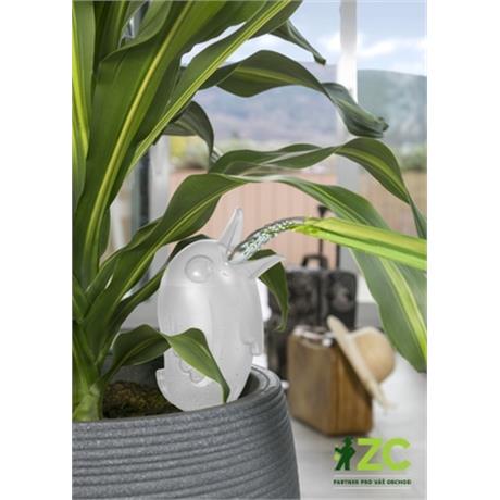 Pomocí hliněného kužele zapíchnutého do země zavlažovač ve tvaru ptáčka postupně zásobuje rostlinu vodou a umožňuje méně časté zalévání.