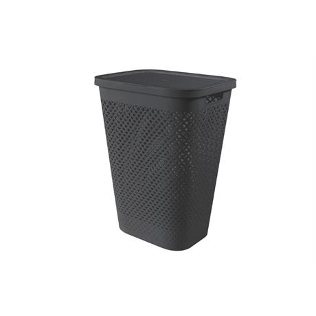 Plastový koš s víkem na špinavé prádlo, materiál plast (70% z recyklovatelného plastu), rozměry: 43 x 58 x 35 cm, vhodný do každé domácnosti – čistý design. Objem 55 l, barva tmavě šedá.