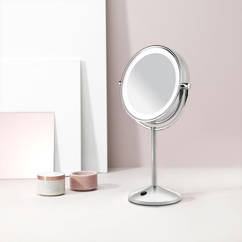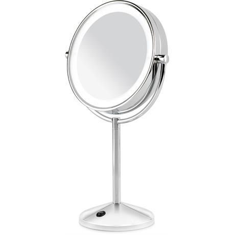 Pečujte o svou krásu do posledního detailu. S bezchybným vzhledem každý den vám pomůže kosmetické zrcátko s LED podsvícením BaByliss 9436E. Oboustranné zrcadlo nabízí běžný odraz na jedné straně a 10× zvětšený pohled na opačné straně pro preciznost při líčení nebo péči o pleť. Díky jemnému LED osvětlení a bezdrátovému provozu se stane vaším praktickým a stylovým doplňkem doma i na cestách. Pochromovaný design podtrhne jeho sofistikovaný vzhled a přinese vám komfort při každodenní rutině.