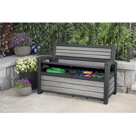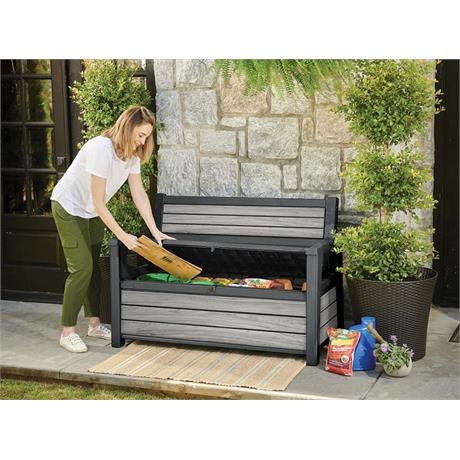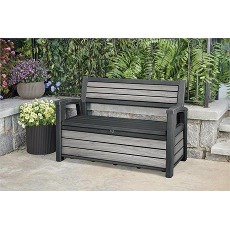 Stylová lavice a praktický úložný prostor v jednom – ideální kombinace pro každou zahradu nebo terasu. Zahradní lavice Keter Deco Garden Bench v dekoru Storm grey nabízí pohodlné sezení pro dvě osoby a zároveň slouží jako úložný box o objemu 265 l na polštáře, deky nebo další zahradní doplňky.