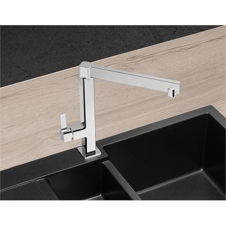 Baterie BDC5327 je otočná o 360°, takže se plně přizpůsobí vašim potřebám. Tuto variabilitu oceníte především ve spojení s flexibilními dřezy Concept, které nabízejí oboustranné využití. Díky plně otočnému systému můžete baterii umístit z jakékoliv strany. Další výhodou je pákový systém, díky kterému se velmi pohodlně ovládá. Jednou rukou rychle navolíte správnou teplotu i sílu proudu, takže nebudete zbytečně plýtvat vodou a snížíte její spotřebu.
