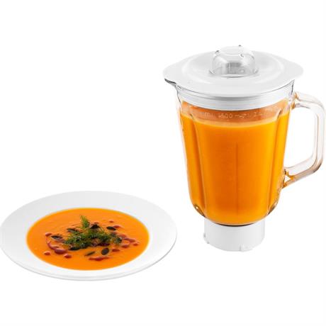 1,5l mixovací nádobě ze skla pohodlně připravíte jemné omáčky, krémové polévky i příkrmy pro děti. Mixování kousků ovoce či zeleniny je samozřejmostí, a tak si vitaminové bomby v podobě smoothie přichystáte během chvíle. Robot vám pomůže i s přípravou oblíbených pomazánek, dresinků a marinád.