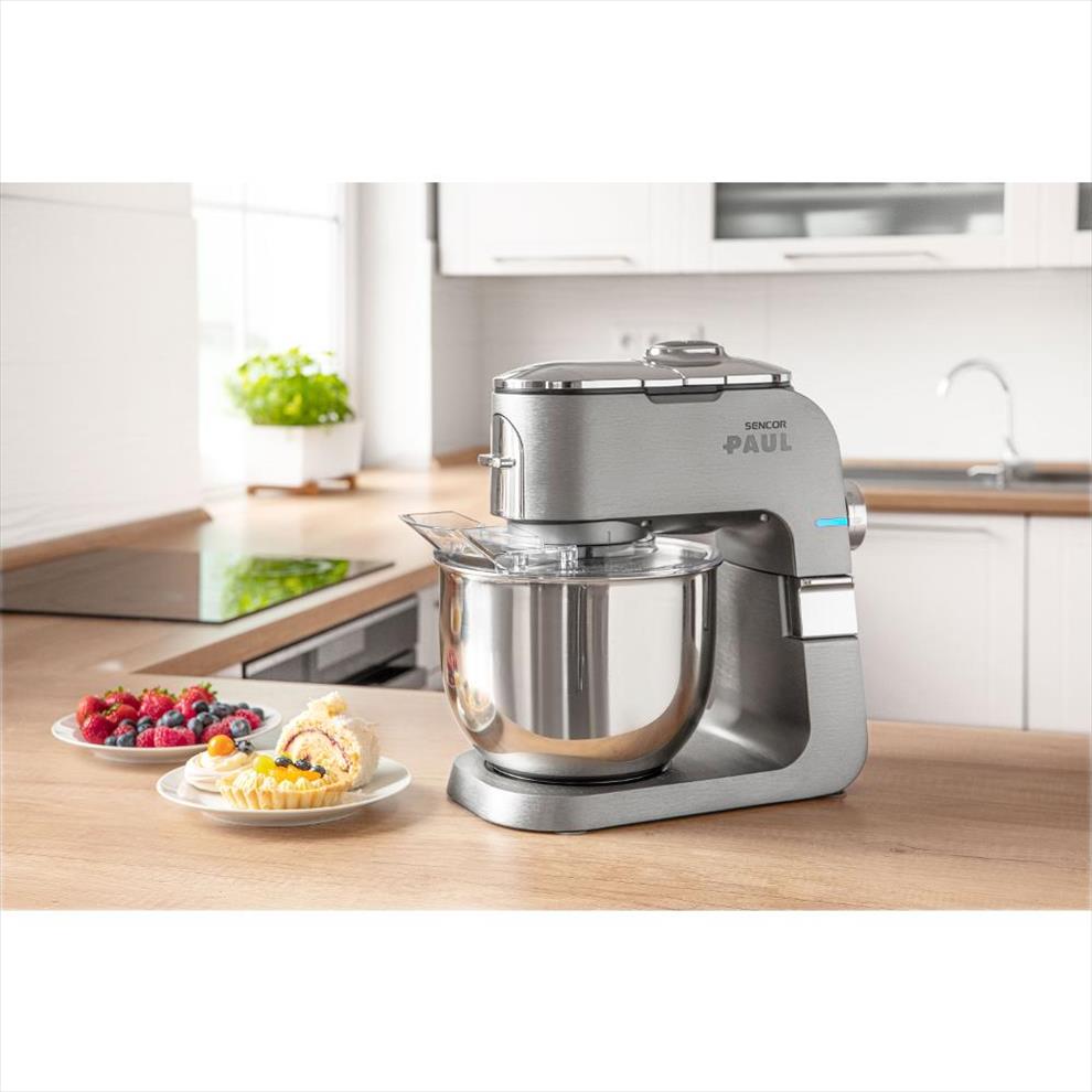 Celokovový robot od značky Sencor vás nezklame. Robustní konstrukce doplněná o kovové převody a silný 1 700W motor hravě zvládnou i větší množství hutného kynutého i nadýchaného piškotového těsta. Díky planetární převodovce je navíc tišší a disponuje delší životností.